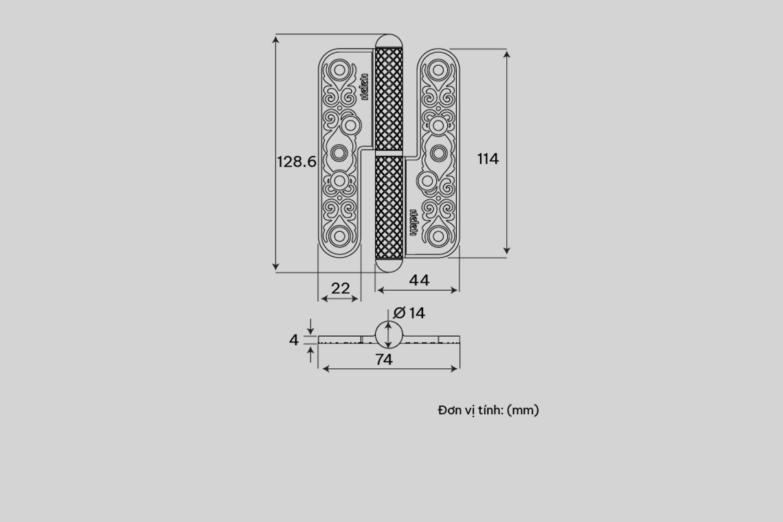 Sản phẩm bản lề cối HCP-2904 được sản xuất bằng vật liệu đồng thau đúc nổi hoa văn dày 4,4mm. Sản phẩm có kết cấu chắc chắn và độ cứng vững cao.