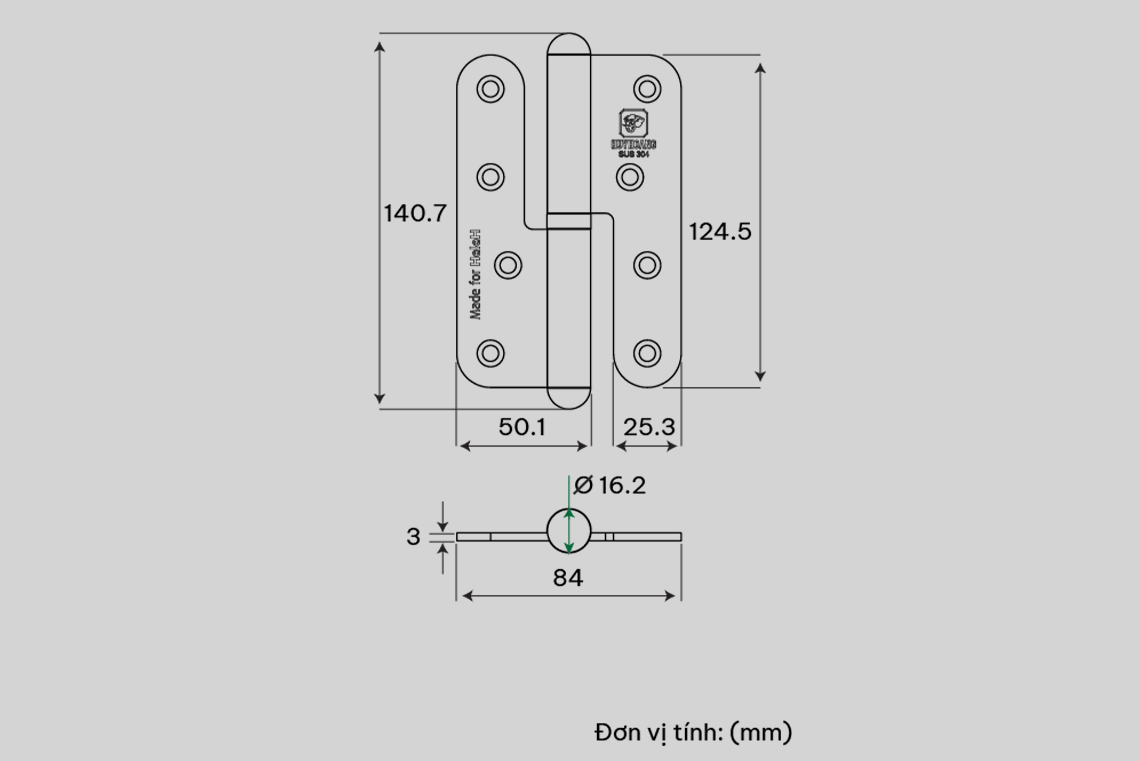 Sản phẩm bản lề cối inox 304-01 sử dụng thích hợp cho tất cả các loại cửa sổ, cửa đi hai cánh, bốn cánh bằng gỗ, sắt hộp.