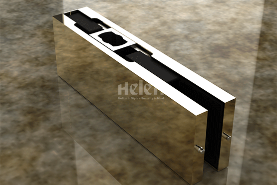 Kẹp kính dướiloại kẹp kính lắp ở mép dưới của cánh cửa kính (thường là cửa kính cường lực), dùng để giữ cố định tấm kính và kết nối nó với bản lề sàn hoặc nền sàn.