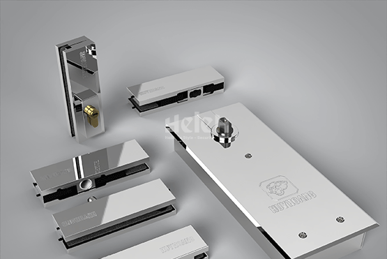 Kẹp kính dướiloại kẹp kính lắp ở mép dưới của cánh cửa kính (thường là cửa kính cường lực), dùng để giữ cố định tấm kính và kết nối nó với bản lề sàn hoặc nền sàn.