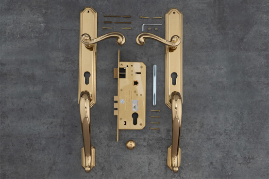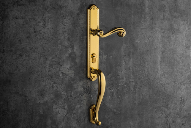 Tay ốp khóa bằng đồng mạ PVD Gold được thiết kế và sản xuất bởi theo tiêu chuẩn HeleH.