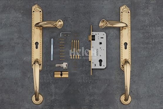 Tay ốp khóa bằng đồng mạ PVD Gold được thiết kế và sản xuất bởi theo tiêu chuẩn HeleH.