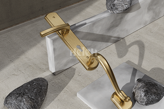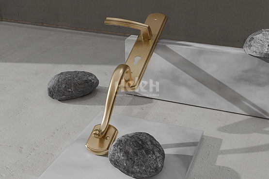 Tay ốp khóa được sản xuất bằng đồng thau và xử lý bề mặt màu xước mờ.
