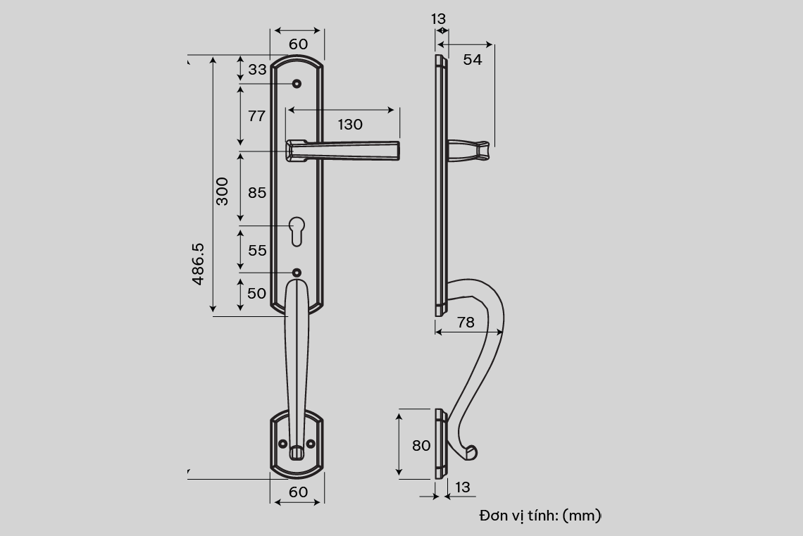 Sản phẩm khóa tay nắm đại sảnh thích hợp sử dụng cho cửa gỗ cao cấp lớn, 2 cánh hoặc 4 cánh.