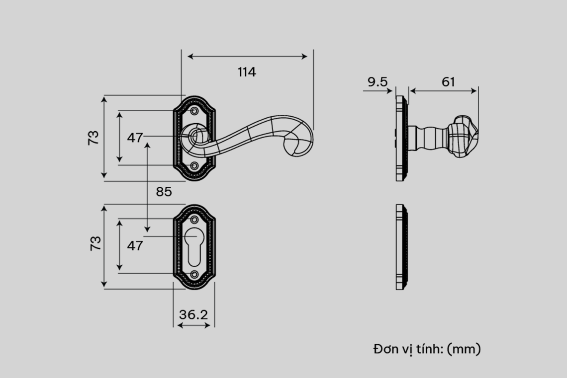 Vật liệu tay ốp : Đồng Thau