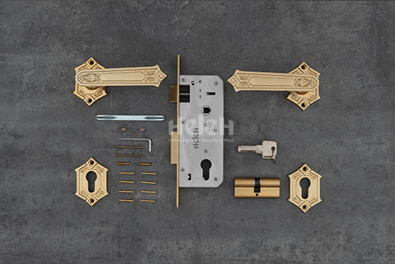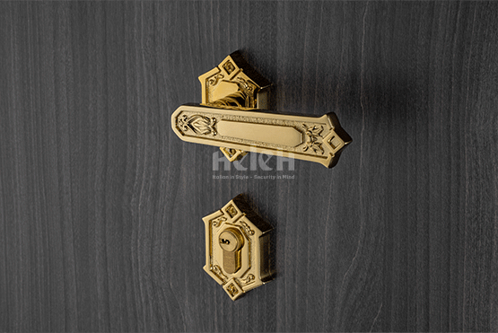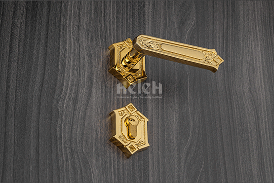 Tay ốp khóa bằng đồng mạ PVD Gold được thiết kế và sản xuất bởi theo tiêu chuẩn HeleH.