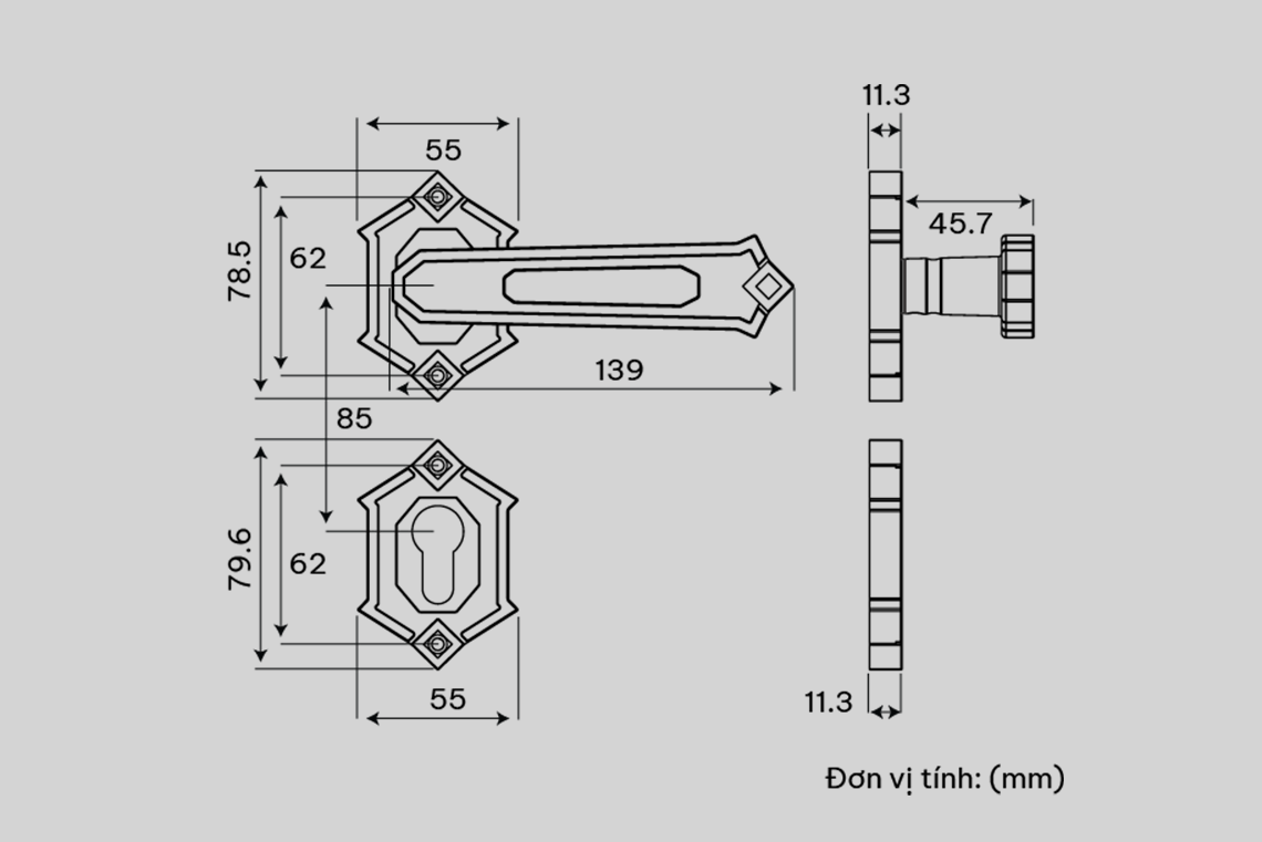 Khóa tay nắm phân thể HC 85 King PVD Gold được thiết kế dành riêng cho cửa thông phòng, mang vẻ đẹp cổ điển hài hòa, tinh tế. Với những đường nét tinh tế lấy cảm hứng từ kiến trúc Việt Nam và nguyên tắc đối xứng của phong cách Ý, sản phẩm không chỉ tạo điểm nhấn ấn tượng mà còn đảm bảo tính tiện dụng cao.