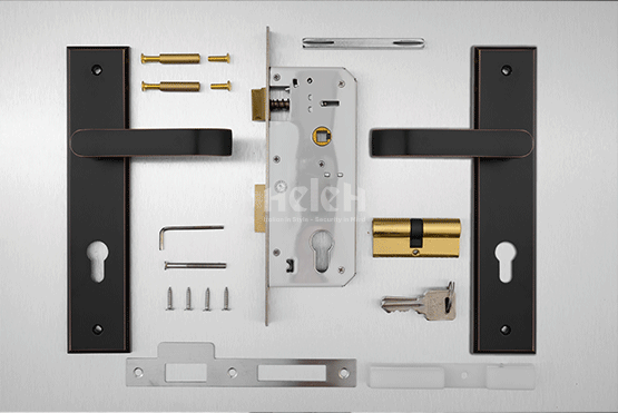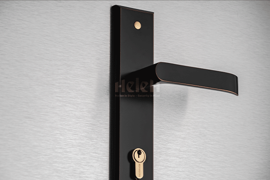 Tay ốp khóa được sản xuất bằng vật liệu Inox 304 và được mạ màu đen viền đồng (Đồng đen American).