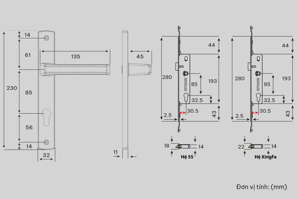 Sản phẩm phù hợp với các bộ cửa nhôm hệ 55, hệ Xingfa… (khi được lắp với các phụ kiện phù hợp).