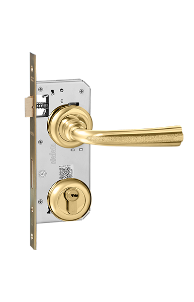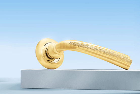 Tay ốp khóa được thiết kế và sản xuất bằng đồng thau bởi HeleH – Italy. Bề mặt được xử lý mạ PVD (vàng bóng) với mã sản phẩm HCP
